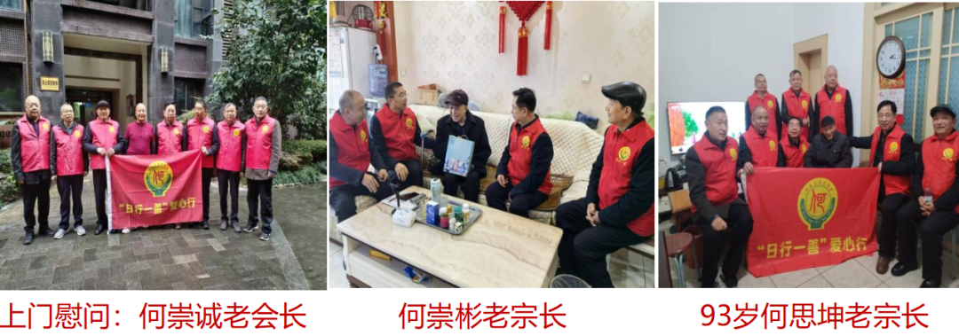 24、25两日,以“上门慰问+现场慰问”相结合的方式,慰问了当地及川内部分地区为何氏家族事务工作做出突出贡献的宗长代表。首先慰问的是“为邛州何氏修志著史、宗亲事务工作突出的高龄宗亲代表”11人,他们是:何崇诚(24号上门慰问)、何承方(现场)、何国清(现场)、何长安(现场)、何成元(现场)、何思坤(24号上门慰问)、何万良、何崇彬(24号上门慰问)、何显庆(现场)、何廷禄、何谢氏(秀英)。