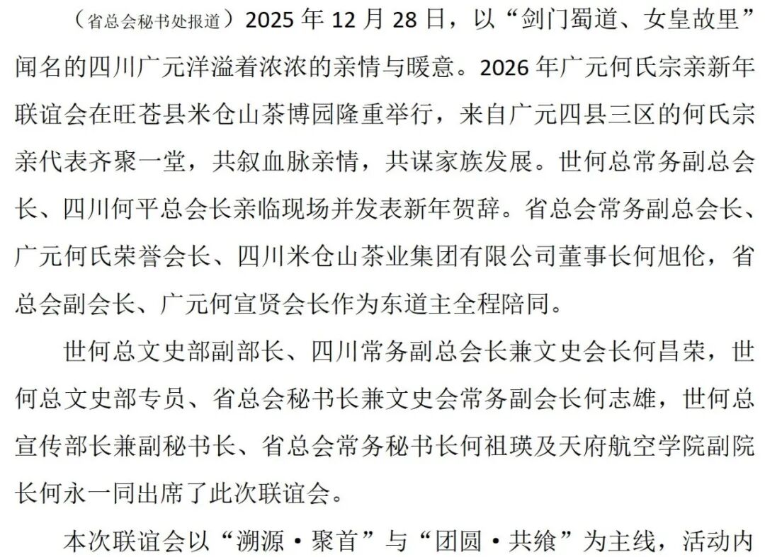 凝聚宗族情 共绘新篇章2026年四川广元何氏宗亲新年联谊会隆重举行